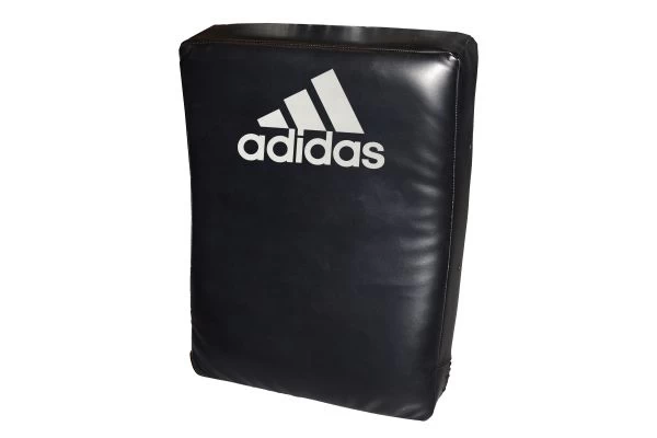 Adidas Curved Kick Shield – The front of the pad is sade from maya, with the rest of the surface being made from leather grain woven (1.2mm) PU material. Padded with ‘aero’ foam padding to absord hard punch and kicks. The shield features air vents on both sides and nylon reinforced 3 suitcase handle bars with additional nylon strap holds for your arm.