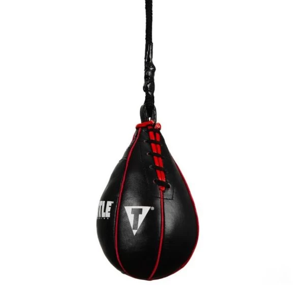 TITLE Boxing Professional Slip Ball – The weighted Slip Ball is a decades old training staple that professional and amateur boxers and combat sport athletes have used to hone their slipping, bobbing and weaving skills, reaction time and speed to sharpen their defensive prowess. Realistic size 7” x 4” leather ball is filled with weighted material to about 8 lbs. Comes complete with an extra-long, durable, 54” length braided nylon hanging rope with S-hook to attach to doorway, ceiling, overhang, steel pipe, etc. to train any time. Same size as boxing glove for more realistic action. Swinging at different velocities can increase or decrease speed. Not developed for punching or striking.
