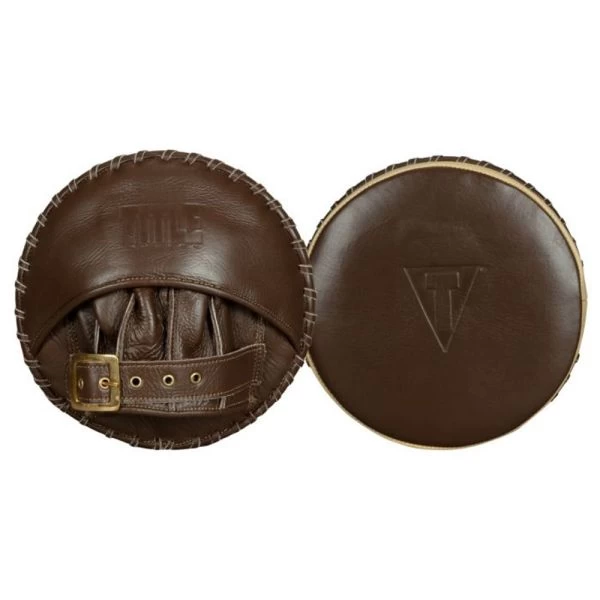 TITLE Boxing Retro Old School Punch Mitts – The TITLE Boxing Retro Old School Punch Mitts are what punch mitts are supposed to feel like! In classic old school style, these punch mitts are constructed from thick vintage leather with a 2” thick foam/horsehair combination core. Like all good things, as they are used, the Retro Old School Punch Mitts break in and form to you like having your very own personalized punch mitts. Each mitt is 8” across and with the fully adjustable gold buckle, it’s the perfect style to add to your gym.