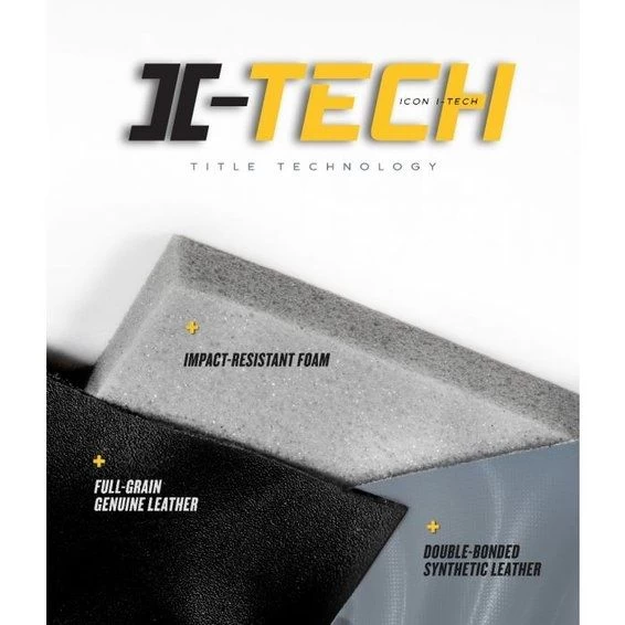 TITLE Icon I-Tech Lace Training Gloves –Â Incredible innovatively engineered training and sparring gloves crafted with advanced I-TECH revolution foam for the peak in power, protection and impact resistance in training and sparring workouts. A superb combination of exceptionally protective, powerful and high shock-suppression inner foams with durable and extra-long lasting full-grain leather striking cover for exceptional training gloves with the I-TECH leadership. High-tech design with anatomically contoured inner fist for a more natural and comfortable hand position is ideal for all training. Full U-channel palm lace-tie security is preferred by many elite athletes for secure, snug, extra-support fit during training. Integrated air release upper palm eyelets with moisture wicking inside hand liner helps keep athlete cool, dry and at peak performance.